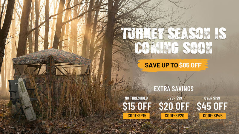 - Turkey Hunting: Use a turkey blind with see-through mesh and a pop-up frame to move easily between roosting zones.